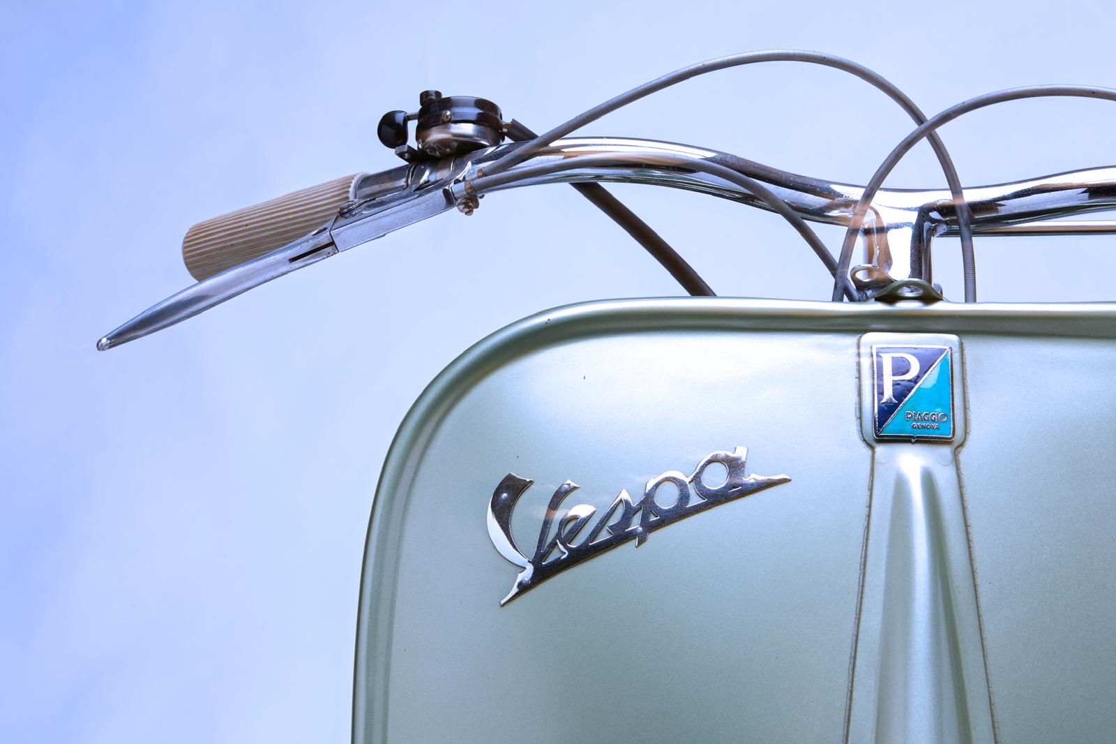 Die Lackierung in Azzurro Metallizzato (Farbcode 890) verlieh der Vespa einen eleganten und zeitlosen Look.